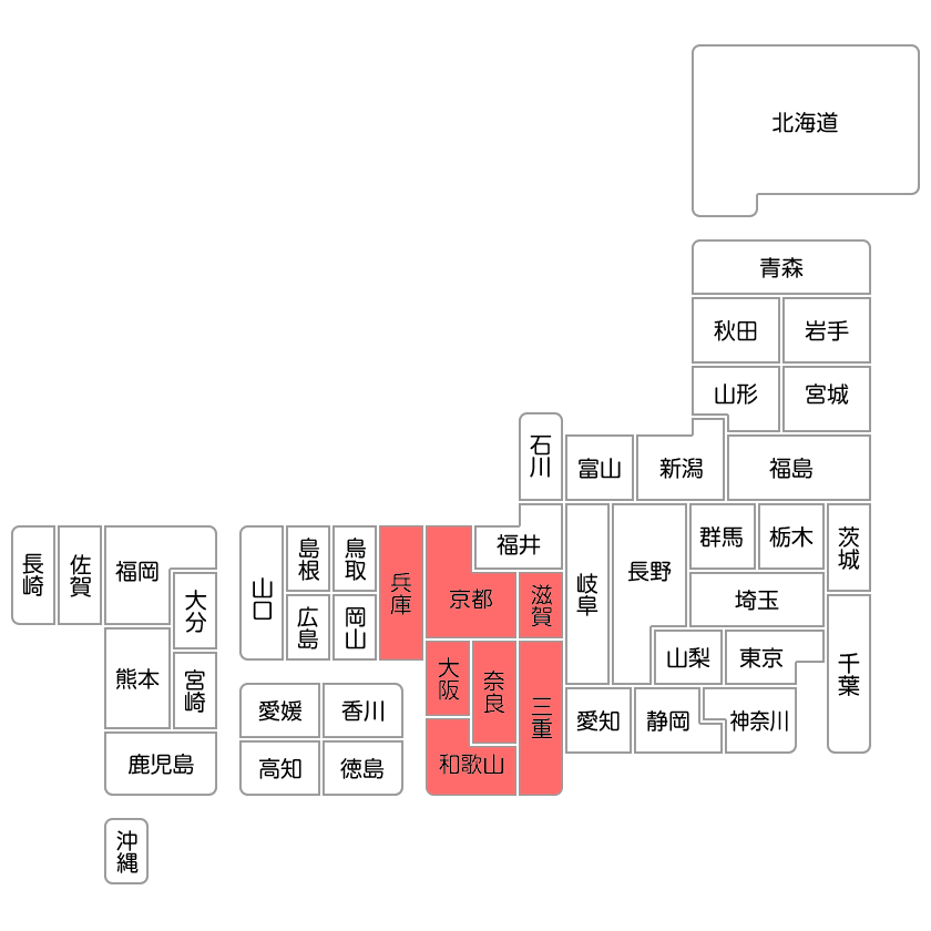 近畿2府5県大阪府・京都府・兵庫県・滋賀県・奈良県・滋賀県・和歌山県上記エリア以外のお客様も、お気軽にお問い合わせください弊社より半径50km圏内のお客様は、出張交通費無料でお伺いいたします